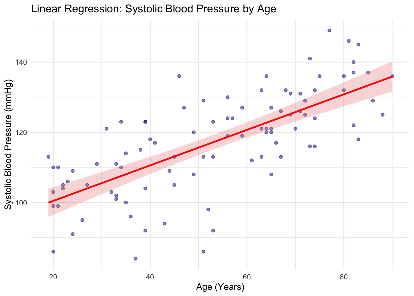 title = "Linear Regression: Systolic Blood Pressure by Age",